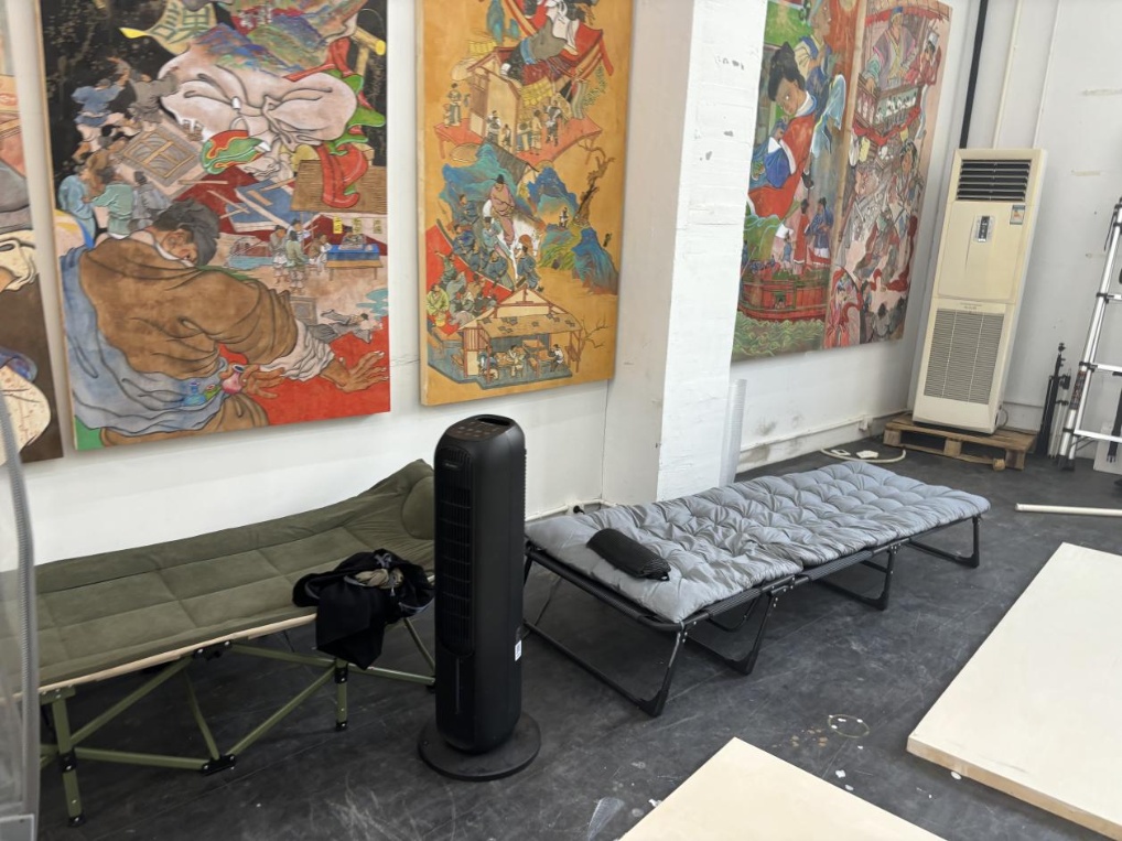 陈汉煜工作室的两张简易床。新华社记者 周杉 摄