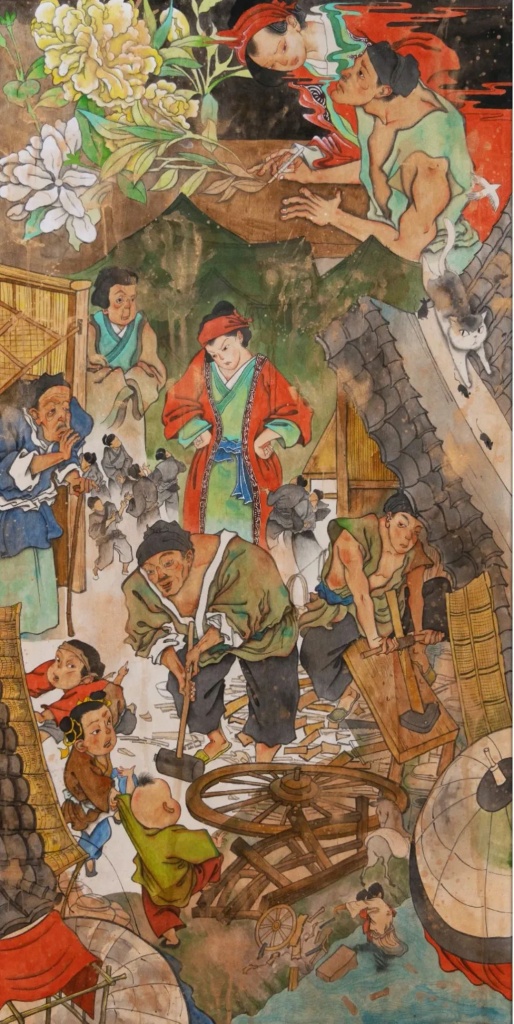 《被家暴的木匠》是陈汉煜“清明上河图小人物的故事”这一绘画系列中获赞最多的作品之一。细节之处的共情力,是陈汉煜视频的“核心竞争力”。《被家暴的木匠》这个故事的灵感,源自于北宋时期女性地位较高,很多名人“惧内”的现象。陈汉煜说:“包括《梦溪笔谈》作者沈括、苏轼好友陈季常等人,都有‘怕老婆’的典故。”《被家暴的木匠》的主人公李大壮本是汴京有名的雕花木匠,一次意外跌落汴河,落下了惊风手抖的毛病。他的夫人何东诗(化用自典故“河东狮吼”)为了帮他保住一家的生计,便谎作家暴者,让人误以为李大壮手抖是因为被家暴,而非病症,就此留住了家里的木匠生意。直到何东诗病逝,李大壮宣布不再雕花,这一真相才被众人得知。