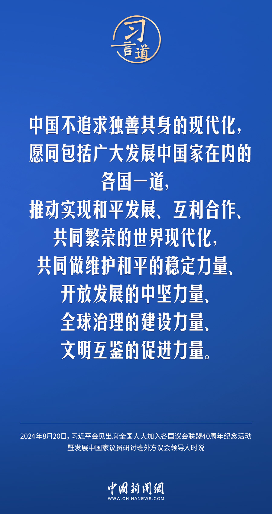 8月20日,国家主席习近平在北京人民大会堂集体会见出席全国人大加入各国议会联盟40周年纪念活动暨第六次发展中国家议员研讨班外方议会领导人。习近平指出——