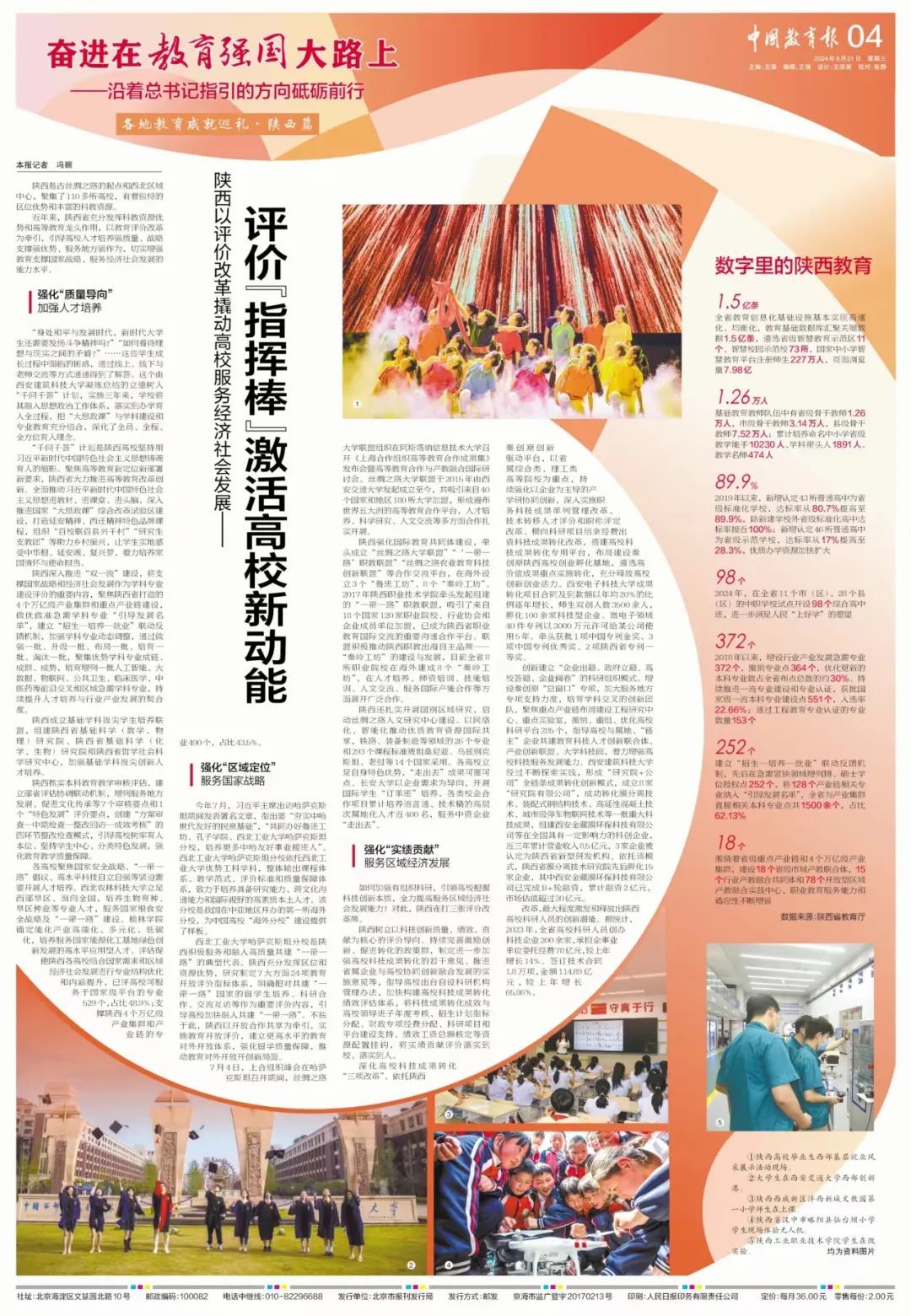 今天,“奋进在教育强国大路上——沿着总书记指引的方向砥砺前行”专栏之“各地教育成就巡礼”系列,通过一个视频、一组大图、一篇报道介绍陕西如何以评价改革撬动高校服务经济社会发展——