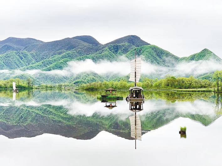大九湖水天一色风景优美。(湖北日报通讯员 龚平 摄)