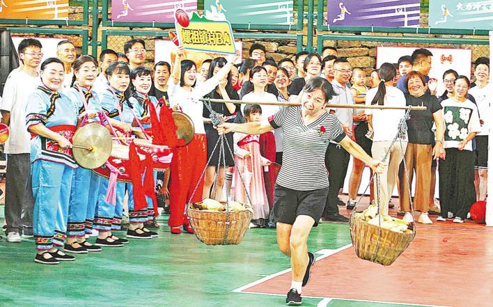 全民趣味运动会上,农活儿变成竞技项目。(湖北日报通讯员 虞顺意 摄)