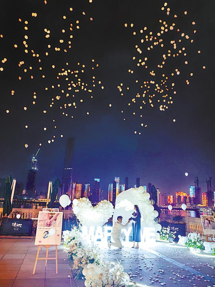 以长江天际线为幕布,渡咖江景店已见证多对新人求婚成功。(受访者供图)