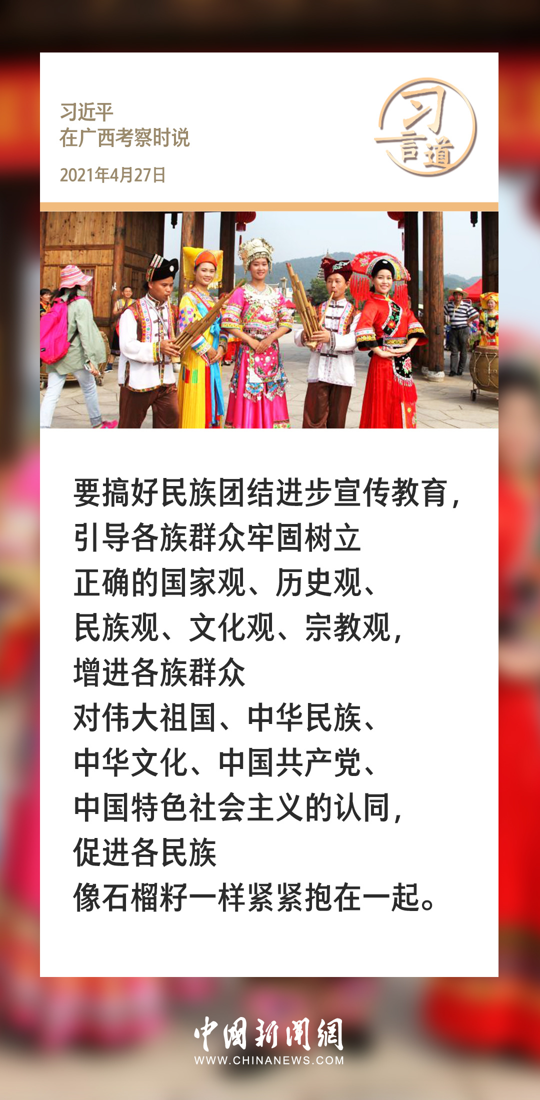 民族团结是我国各族人民的生命线,中华民族共同体意识是民族团结之本。习近平总书记始终高度重视民族工作,强调促进各民族像石榴籽一样紧紧抱在一起。