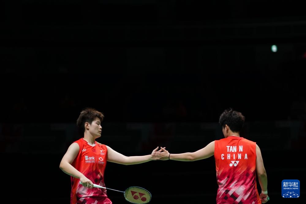 8月21日,中国组合刘圣书/谭宁(右)在比赛中。新华社记者 张笑宇 摄