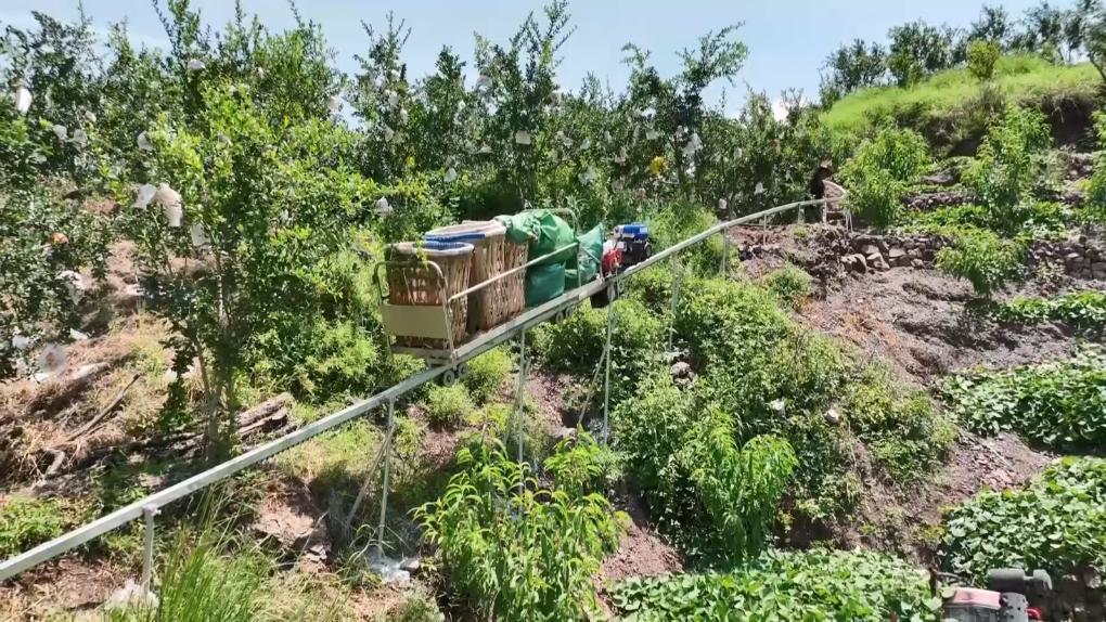 立秋以来,云南省会泽县的5.5万亩盐水软籽石榴迎来了采收期。今年,一些果农在石榴园里装上了单轨运输车,大大提高了石榴采收效率。