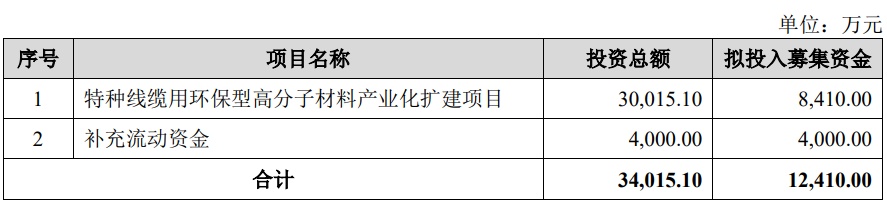 本次发行超额配售选择权行使前,太湖远大的募集资金总额为12,410.00万元,扣除发行费用后的募集资金净额为10,399.14万元。公司募集资金净额比原计划少2,010.86万元。太湖远大2024年8月9日披露的招股书显示,公司拟募集资金12,410.00万元,用于特种线缆用环保型高分子材料产业化扩建项目、补充流动资金。
