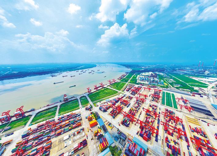 8月17日,繁忙的武汉阳逻国际港。汉口出入境边防检查站数据显示,船舶出入境数量连续五年居长江中上游首位。 (湖北日报全媒记者 田悦 通讯员 胡艳 摄)