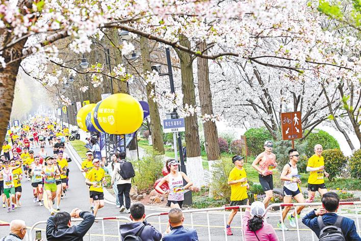 2024武汉马拉松,3万名来自29个国家和地区的参赛选手一起奔跑在樱花盛开的武汉。 (湖北日报全媒记者 朱熙勇 摄)