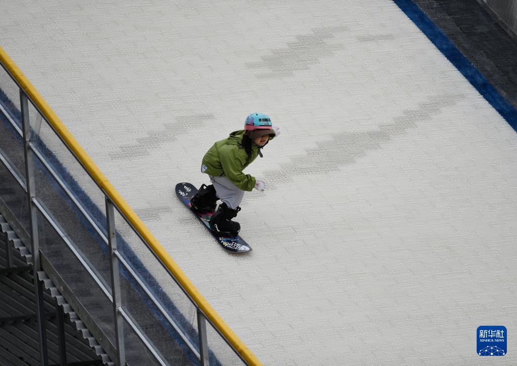 旱雪场背后的“黑科技”是吸引他们前来的主要原因之一。这里的模拟滑雪材料采用特殊塑料制成,呈一簇簇整齐排列的芽状,近看头顶圆圆,支撑的颈部约一根手指长,特别像一丛金针菇。据介绍,从触感、声音和滑行感受,“金针菇”对真雪能有90%的模仿度。
