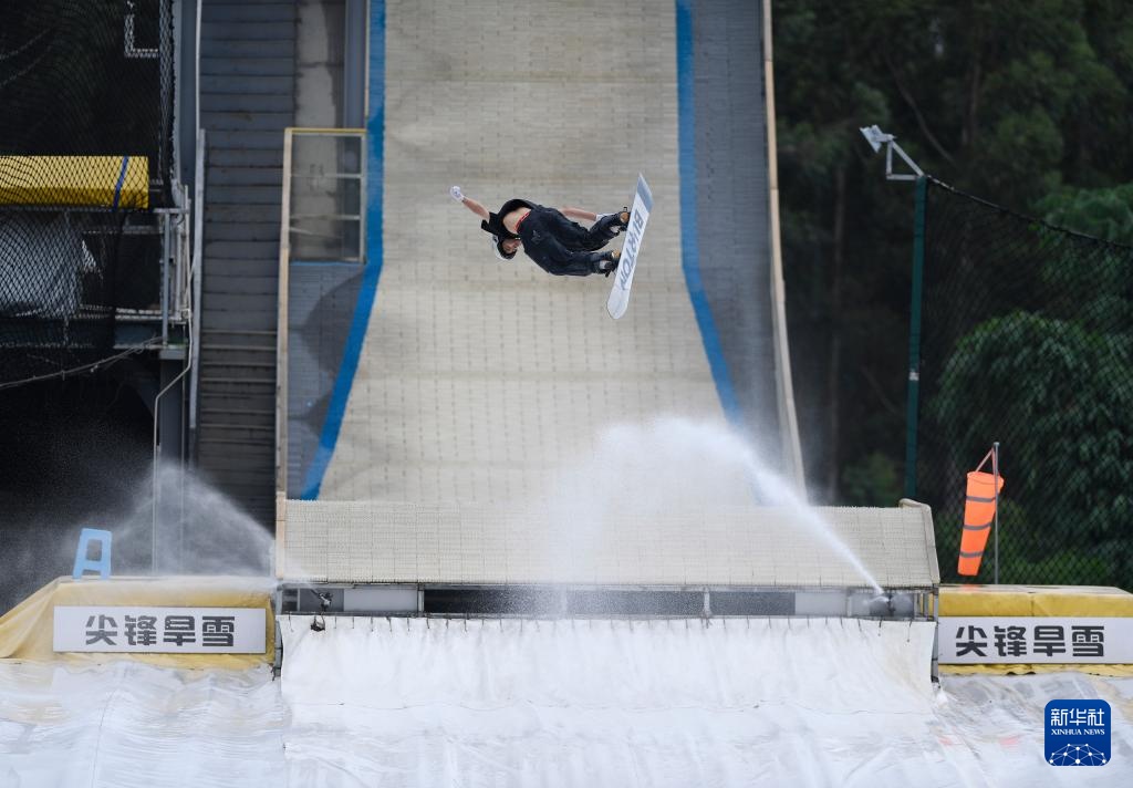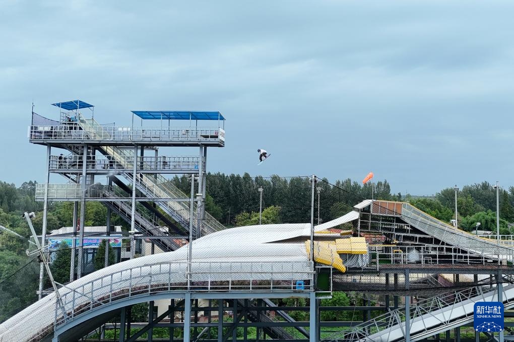一名运动员在成都尖锋旱雪四季滑雪场训练(8月9日摄)。新华社记者 刘坤 摄