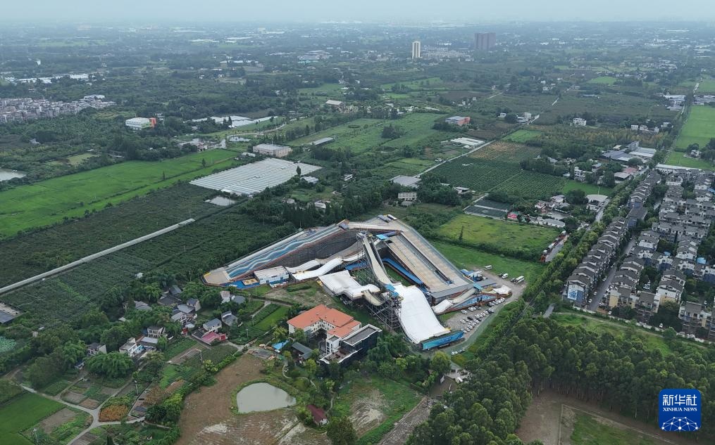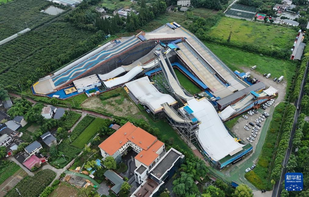 成都尖锋旱雪四季滑雪场全景(8月9日摄,无人机照片)。新华社记者 刘坤 摄