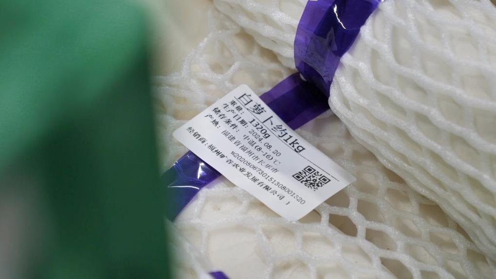 在朴朴超市福州总仓,产自河北的流星包菜、云南白菜、山东西红柿等蔬菜有序排列。福州朴朴电子商务有限公司公共事务经理林夏淅说,今年8月1日至8月19日,朴朴超市整体的蔬菜平均售价环比7月增长4.9%。