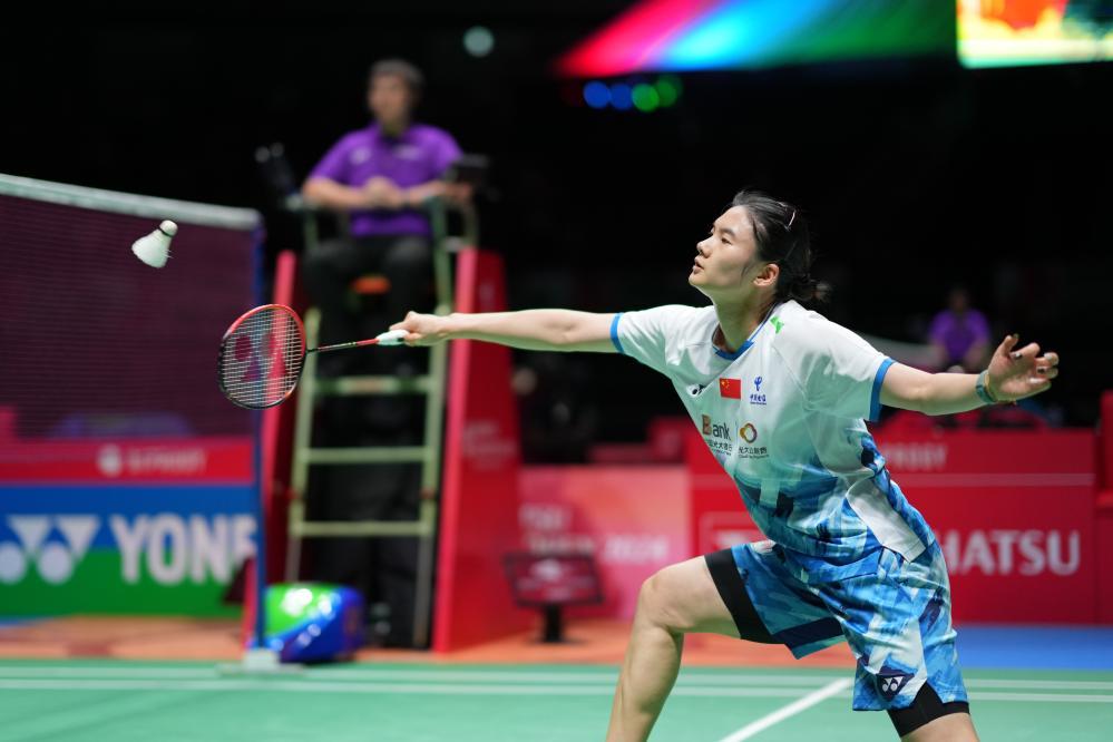 石宇奇在与日本选手田中涌士的比赛中以10:21先失一局,但他及时调整,以21:9、21:11连下两城,逆转对手闯进四强。