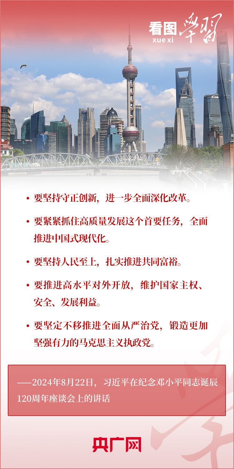 8月22日,习近平总书记在纪念邓小平同志诞辰120周年座谈会上发表重要讲话指出,邓小平同志的历史功勋是全方位的、开创性的,对中国和世界的影响是深刻的、长远的。总书记强调,对邓小平同志最好的纪念,就是把他开创的中国特色社会主义事业继续推向前进。我们要紧紧围绕以中国式现代化全面推进强国建设、民族复兴伟业这个中心任务,继往开来,奋发进取。一起来学习!