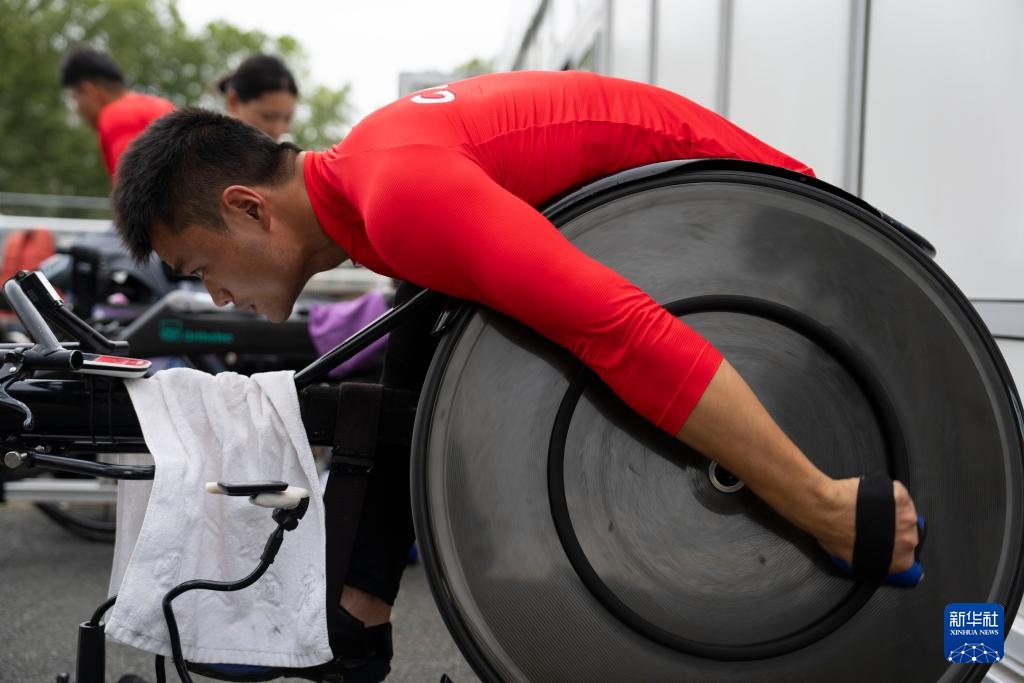 8月23日,国家田径队轮椅竞速组运动员胡洋在训练中。新华社记者 才扬 摄