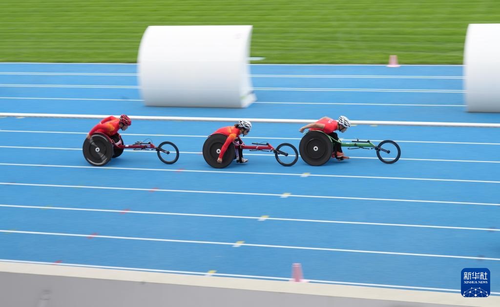8月23日,国家田径队轮椅竞速组运动员在训练中。新华社记者 才扬 摄