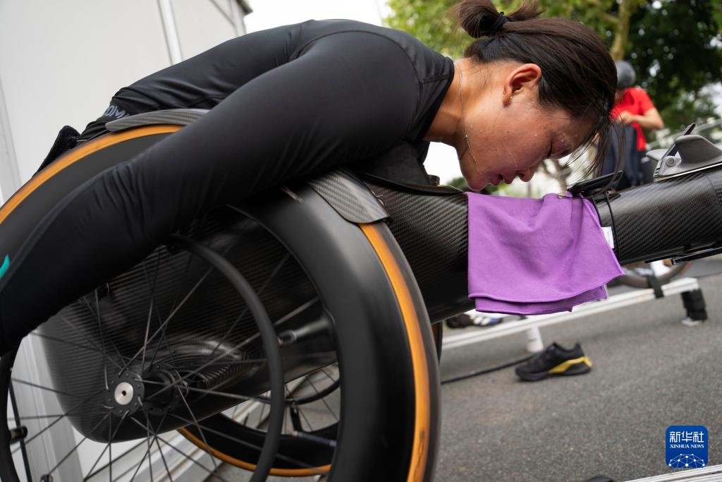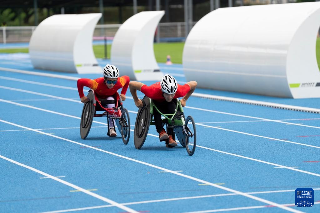 当日,巴黎残奥会中国体育代表团田径运动员进行赛前训练,备战即将开幕的2024年巴黎残奥会。