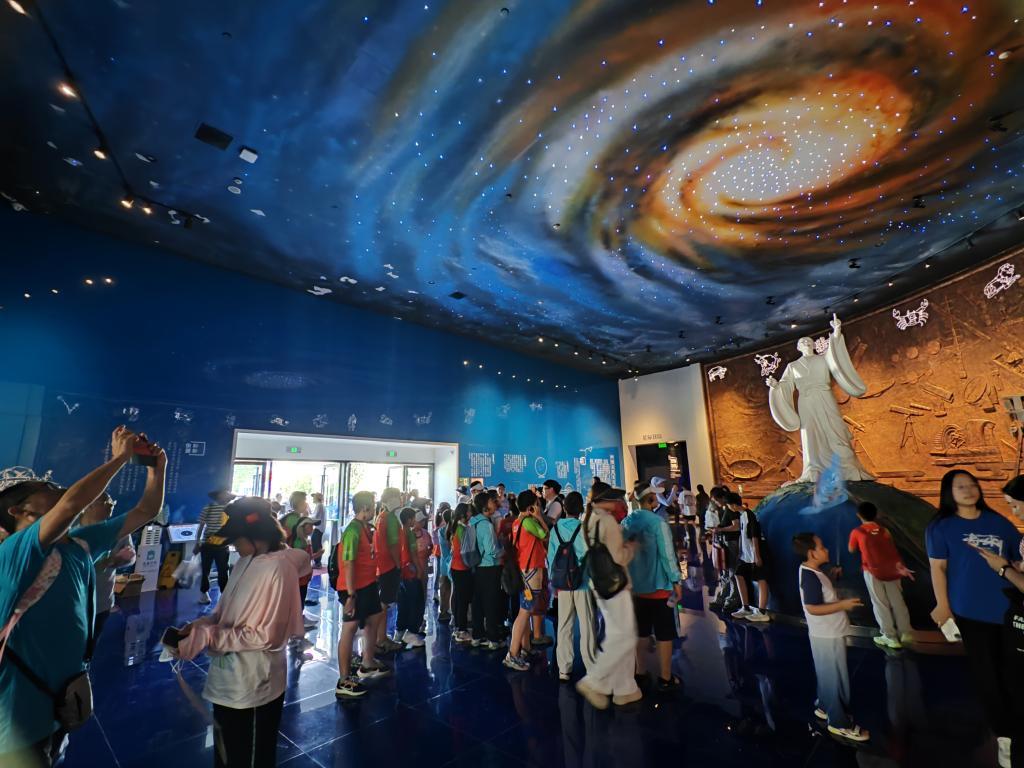 天文体验馆、时光塔、天幕街,小镇处处充满科技感和未来感;当夜幕笼罩,抬头便是浩瀚星空。“没想到天眼是这样建成的”“‘天眼之父’南仁东爷爷真厉害”……来自河南郑州一研学团队的30名中小学生登上“中国天眼”观景台、参观完南仁东事迹馆后纷纷点赞。研学导师李亚龙说,这次带的线路以“中国天眼”为核心,包含“观天”“探洞”“看桥”,让青少年充分感受到“中国科技的力量”。