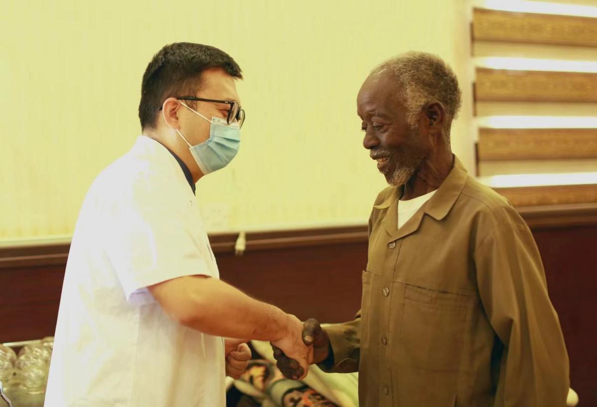 在治疗过程中,令安鹏印象深刻的患者是一位在苏丹总统府工作的厨师,肩周炎导致他肩膀不能上举,活动不利,而经过几次针灸治疗后,患者的肩周炎症状得到了显著改善,他的肩膀能够自如地活动。在康复的喜悦中,这位厨师在诊室里情不自禁地跳起了舞,用苏丹当地方言“加吧,加吧”欢呼着,意思是又可以跳舞了。这一幕也让安鹏感受颇深,这不仅是对安鹏精湛医术的最好证明,更是中苏友谊在医疗援助中温暖绽放的生动写照。