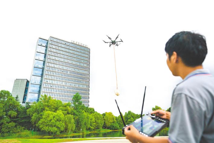 光谷未来科技城,一架电鹰大载重智能无人机搭载运输载荷进行测试。 (湖北日报全媒记者 魏铼 摄)