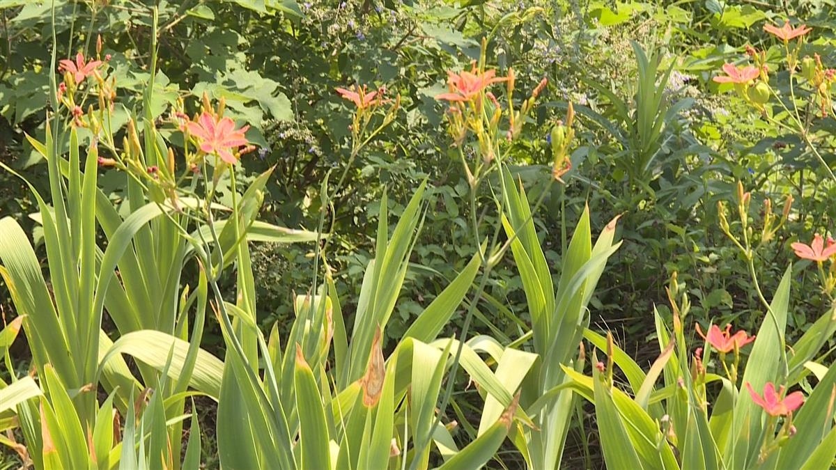 在工人的细心呵护下,射干花开放得生机勃勃,射干与当地的村民们相互成就,绘就出美丽乡村的盛景。