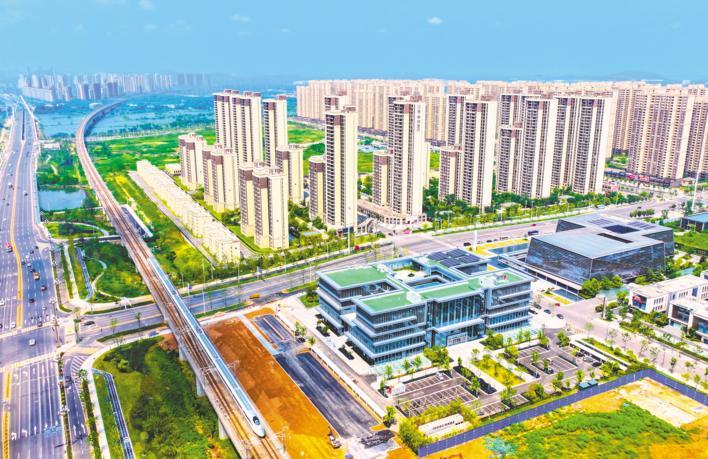 8月20日,一列高铁从刚竣工的鄂州葛店综合服务中心项目旁飞驰而过。该中心由中建三局总承包公司承建,是集对外政务服务、企业路演展示、行政办公、大型会议、运动健身等功能于一体的行政服务综合体,投用后将为葛店开发区市民提供一站式惠民服务,助力武鄂同城化发展。