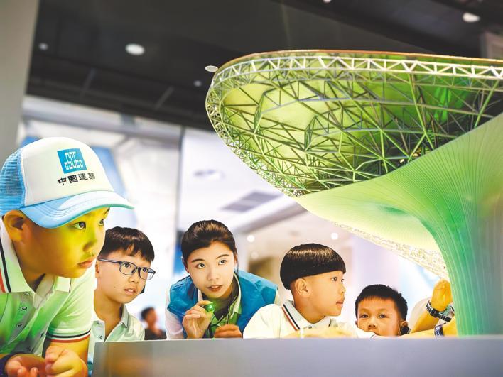 7月30日,2024年全国留守儿童关爱保护“百场宣讲进工地”活动在武汉新城举行,20多名中建三局职工及农民工子女在中国建筑科技馆开展研学活动。