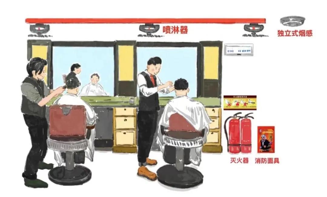 在疏散走道、住宿部分、具有火灾危险性的房间、疏散楼梯的顶部,应使用自动喷水灭火系统、火灾自动报警系统或独立式感烟火灾探测报警器。场所内应配置灭火器、消防应急照明灯等消防设施设备,并保持完好有效。