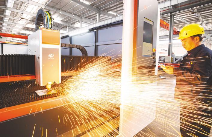 技术人员在华工科技智能制造产业园(葛店园区)调试激光设备。(湖北日报全媒记者 薛婷 摄)