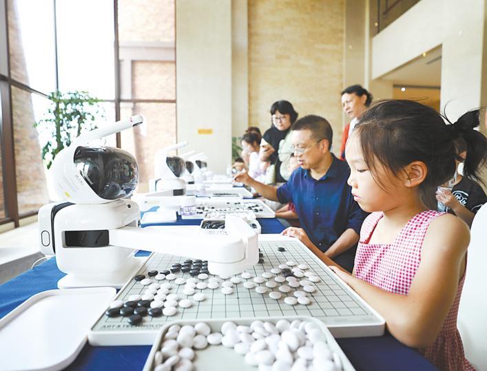 8月24日,在巴东县绿葱坡滑雪场大酒店内,孩子们正与围棋机器人对弈。参加人机比赛的孩子们稳中有序地落子,人工智能对手也迅速回应。这场传统文化与科技兼容的人机比赛,既启迪青少年对传统文化的热爱,也激发他们对科学的兴趣。