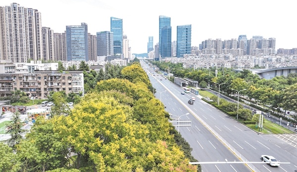 关山大道上,栾树头顶璀璨金冠,玉树临风,鸟瞰之下,涌起一道金色浪花,成了金色大道。“栾树都开花了,暑热该退场了吧。”市民李先生期待凉风四起的新秋时节。