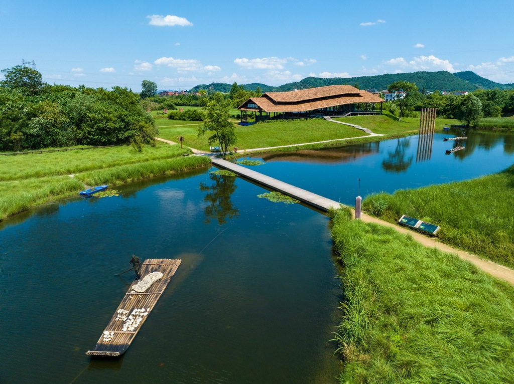 2024年7月4日拍摄的杭州良渚古城遗址公园全景(无人机照片)。新华社记者 江汉 摄