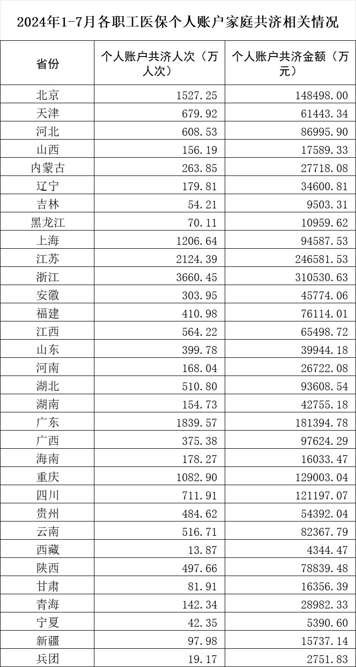 2024年1-7月职工医保个人账户家庭共济1.91亿人次,共济金额227.38亿元