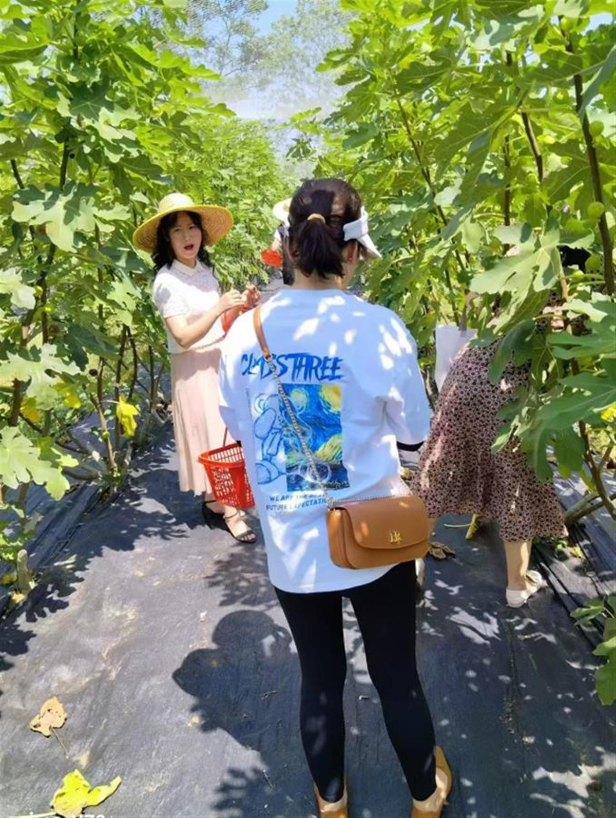 “眼前的无花果品种叫菠姬红,饱满汁多、香甜软糯,口感细腻,采摘25块一斤,平台上团购15块一斤。”早上7点左右,农场主朱海华就带着务工的村民忙碌着穿梭在果树下,将成熟的鲜果采摘、分拣、套袋、装筐。