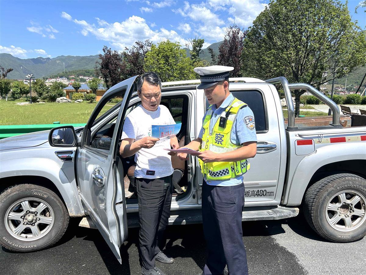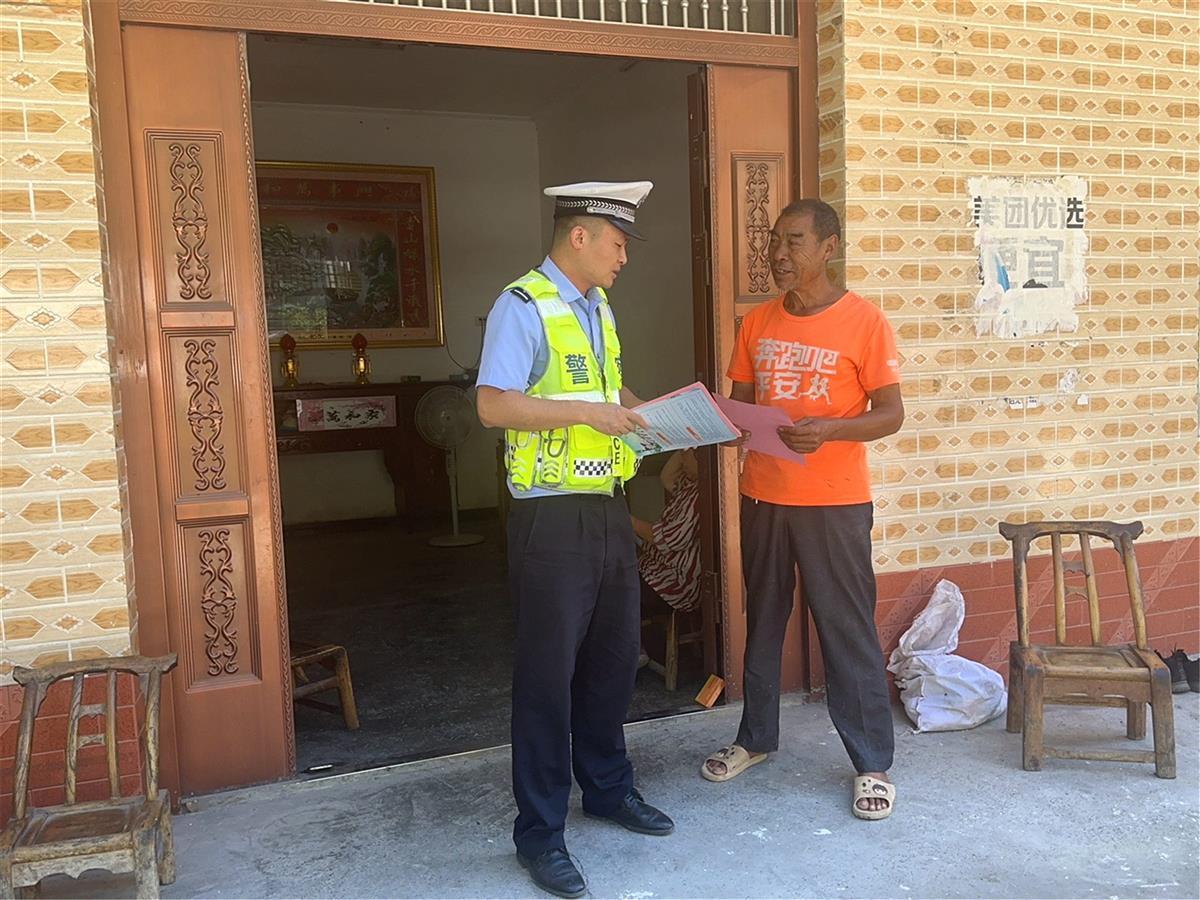 为进一步提升群众交通安全意识,有效预防和减少道路交通事故。近日,湖北省襄阳市保康县公安局交警大队宣传小分队走进辖区国省道沿线村庄、事故多发频发路段,开展“敲门行动”,靶向精准“送教上门”,将交通安全送进千家万户。