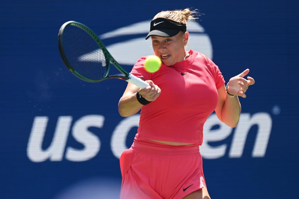 8月26日,阿尼西莫娃在比赛中回球。新华社记者 李睿 摄