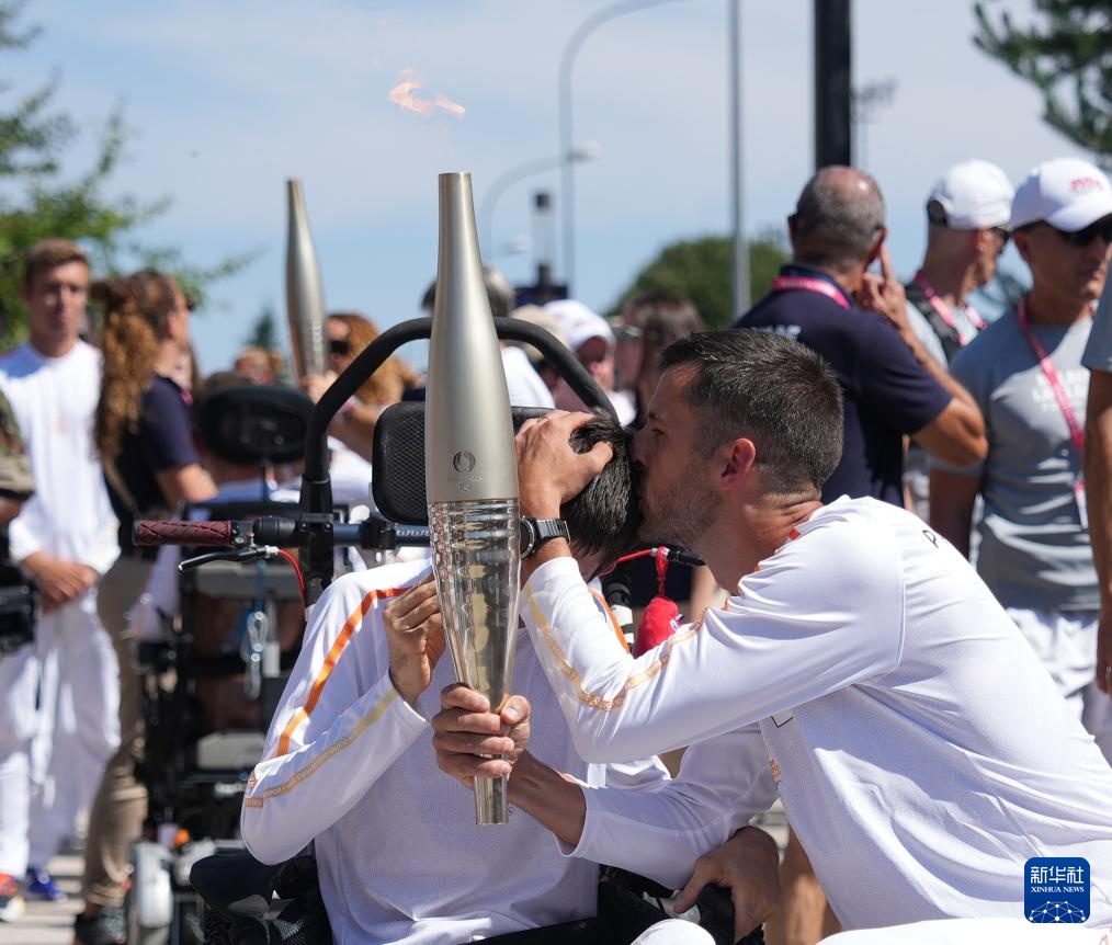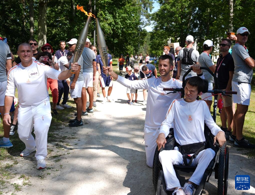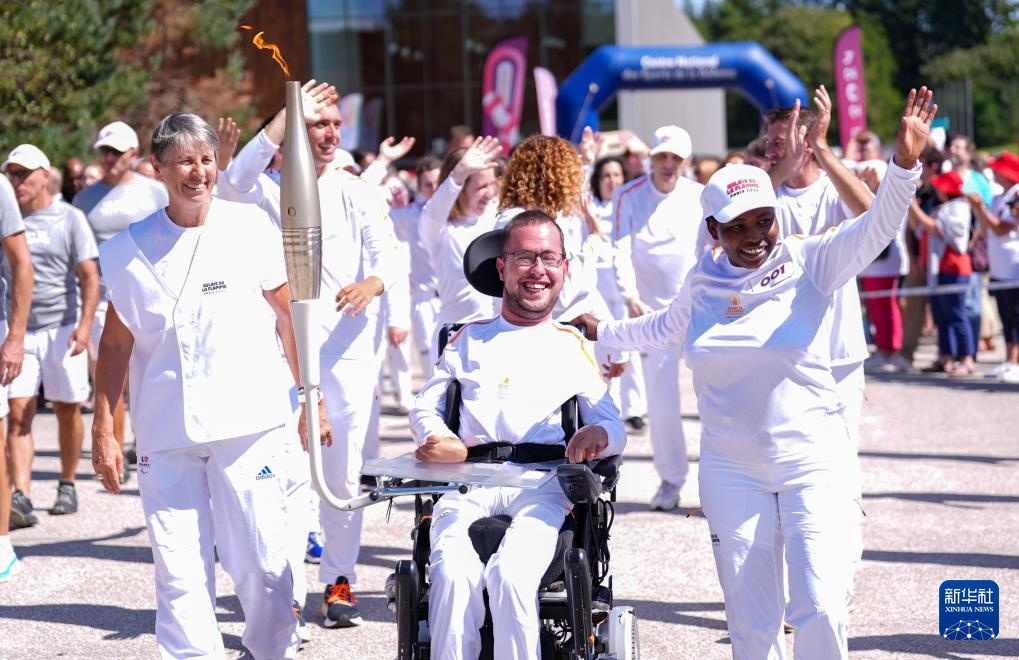 当日,巴黎残奥会火炬传递在法国枫丹白露举行。