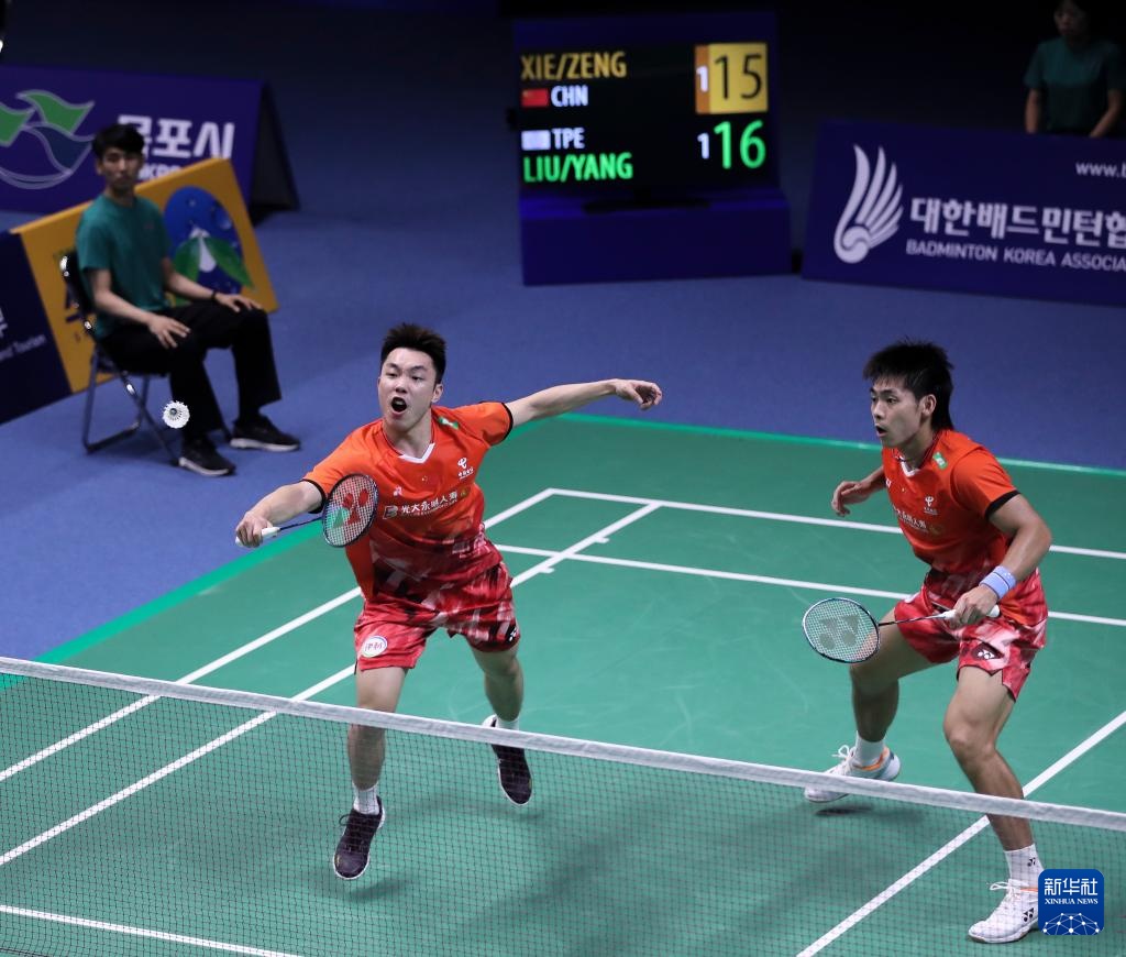 当日,在韩国木浦市举行的2024年韩国羽毛球公开赛男双首轮比赛中,中国选手谢浩南/曾维瀚2比1战胜中国台北选手刘广珩/杨博涵,晋级次轮。