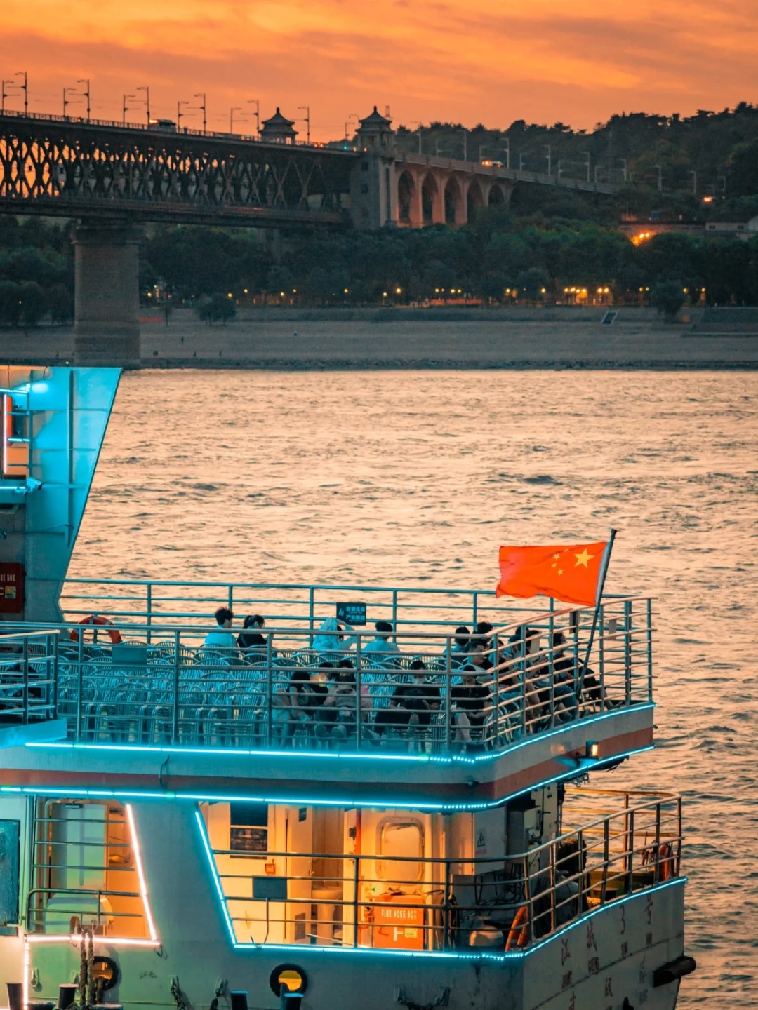 华灯初上,长江灯光秀将高楼变成光影巨幕;漂在长江上的游轮,等待每一位痴迷武汉风情的人;夜上黄鹤楼观三镇美景,风光尽收眼底;江汉路步行街、楚河汉街夜色醉人,人流如织、车水马龙。