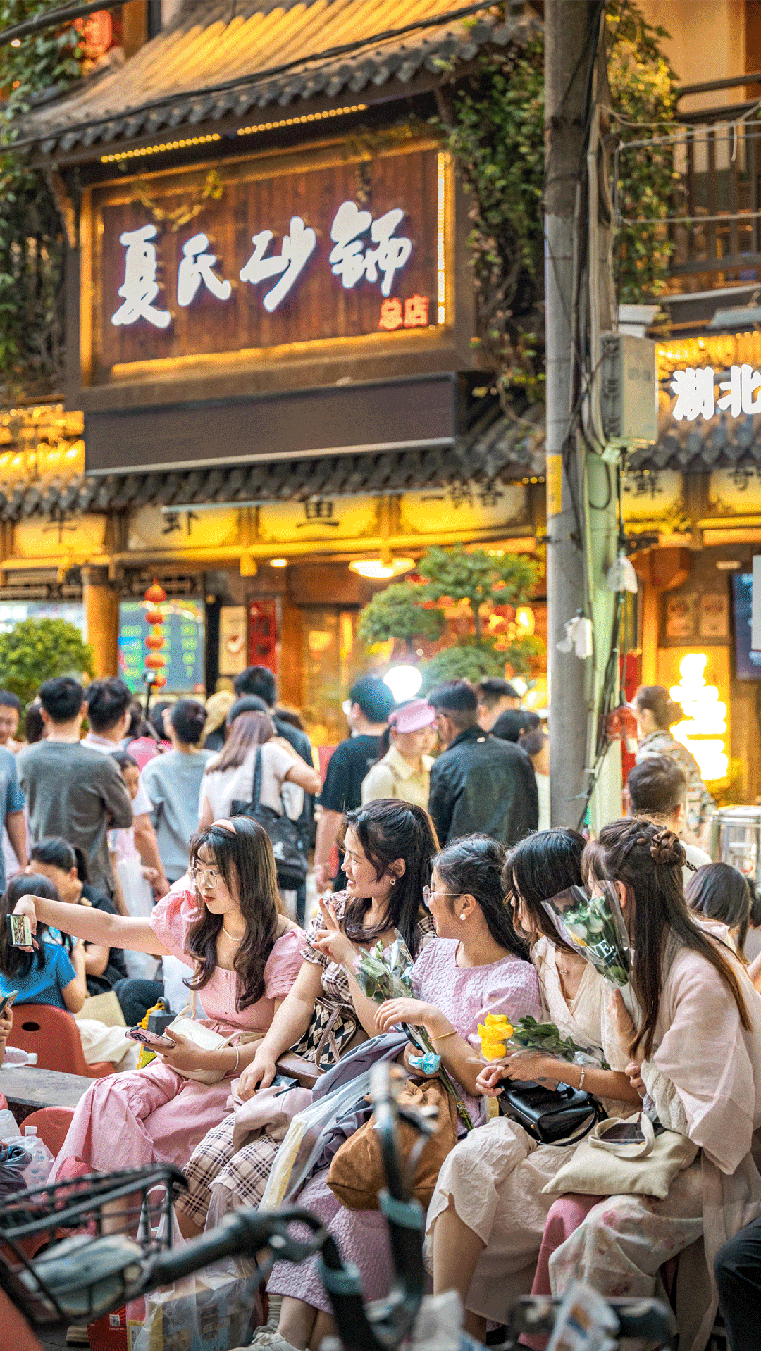 △“过早户部巷,宵夜吉庆街。”以前,户部巷被称为“汉味早点第一巷”,如今是武汉的美食地标,汇集了众多地方特色小吃,熙熙攘攘是这里的常态。