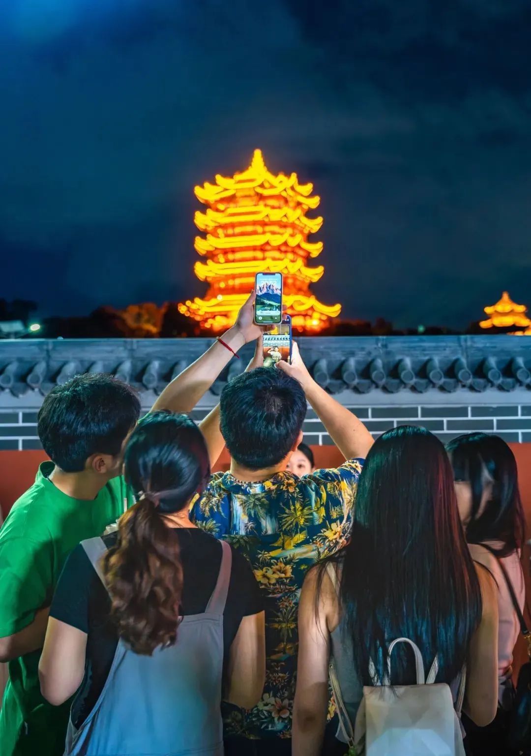 每到节假日,黄鹤楼景区的游客从楼顶排到山脚,常常火爆到限流。