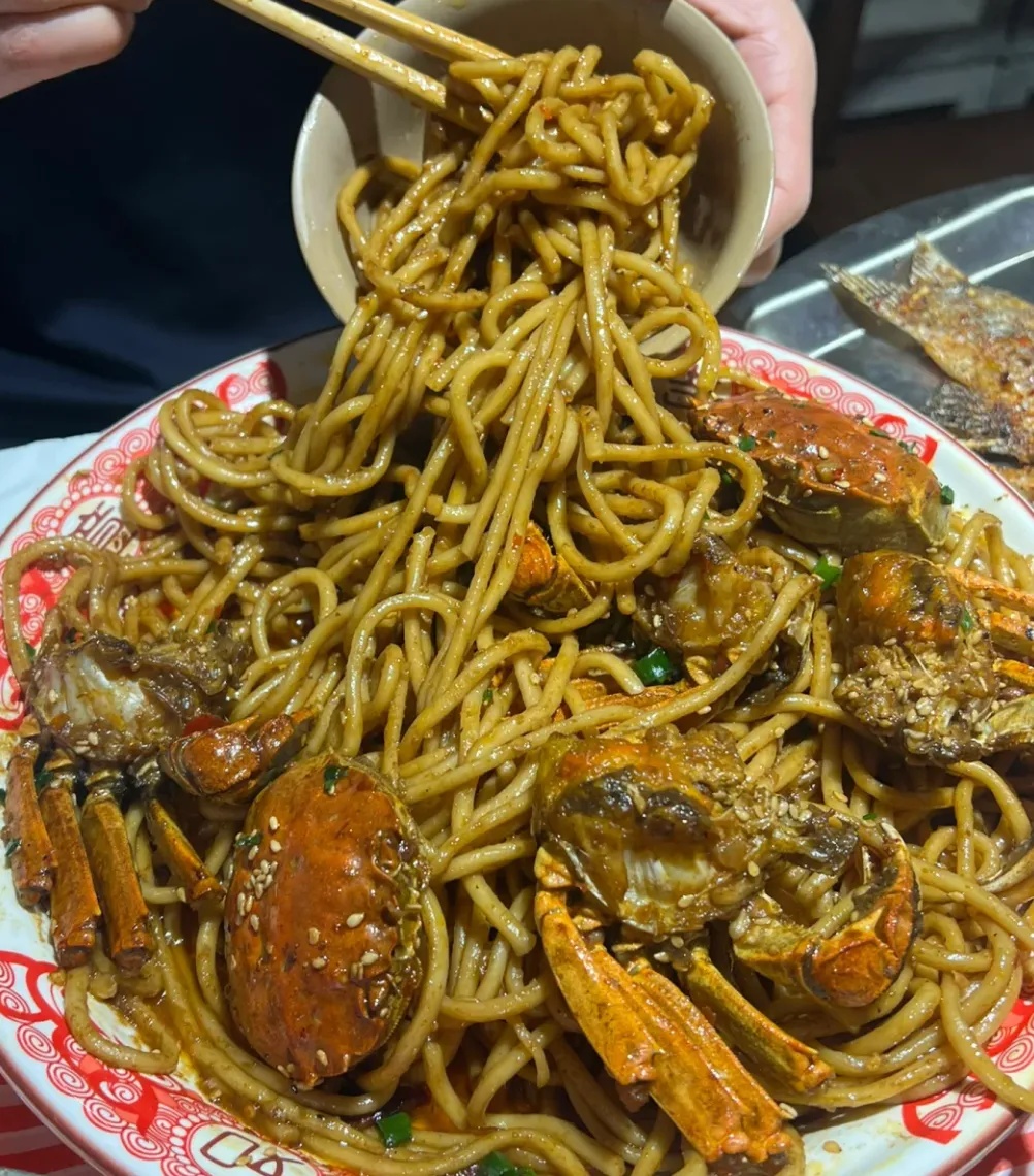 秋天一到,就要吃蟹脚面和香辣蟹了。吃蟹后剩下的汤汁和面条汇成一碗蟹脚面,也是武汉特色。