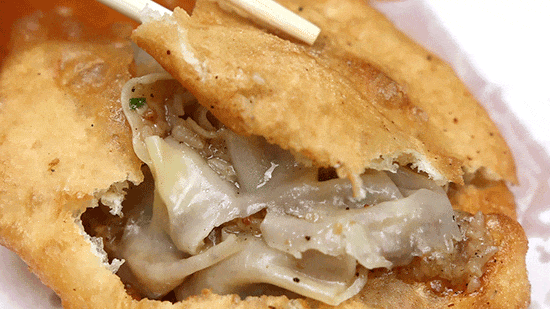 油饼包烧卖是只有“重油”的武汉人才能想到的搭配。把烧卖裹在一张切开的油饼里,碳水包碳水再包碳水,糯米、烧卖皮和油饼,很难界定哪个才是真正的主角。