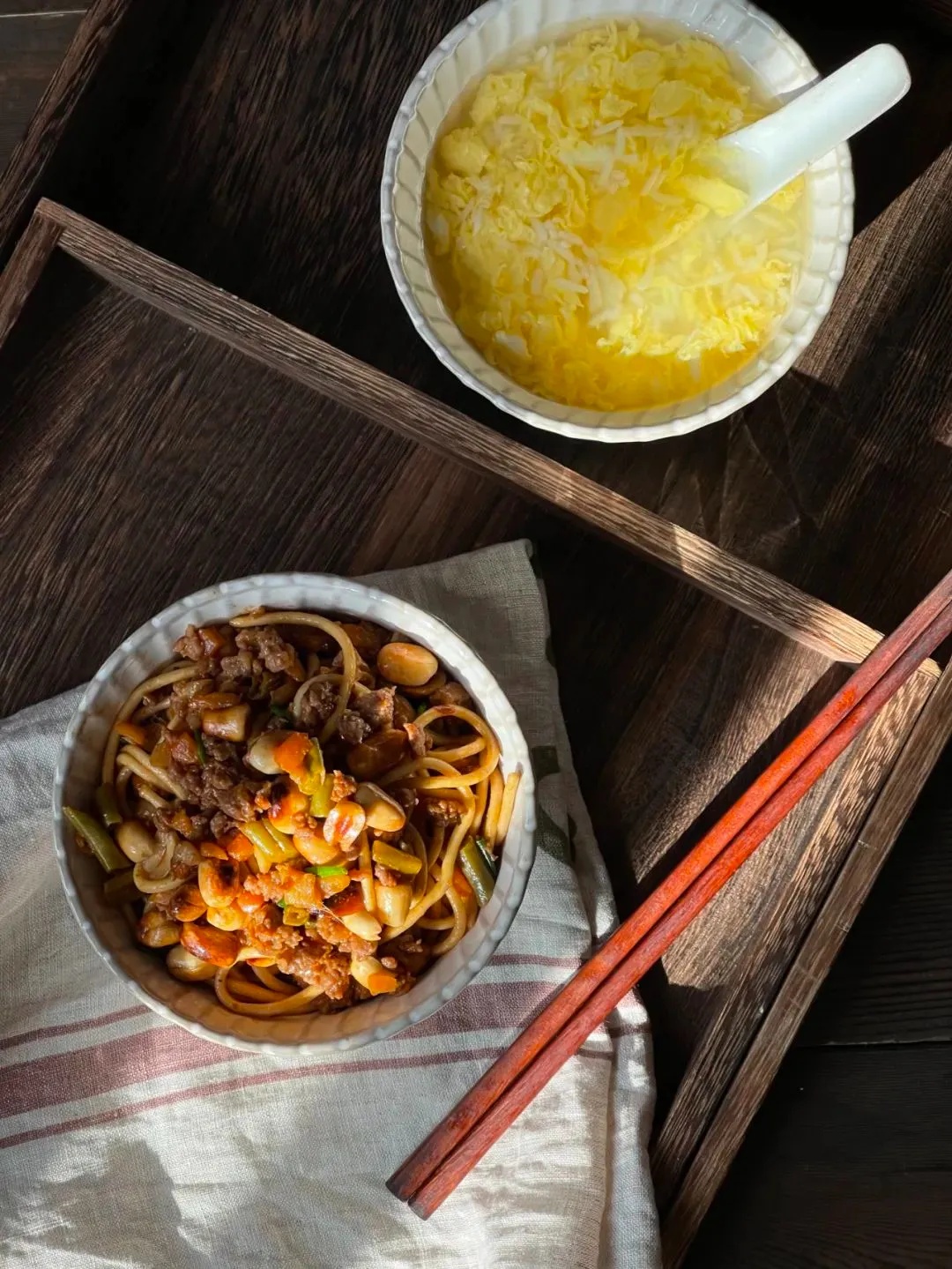 4️⃣过早吃的热干面,武汉人会嘱咐老板:“下碗热干面,多把diě芝麻酱。”(多给点芝麻酱)