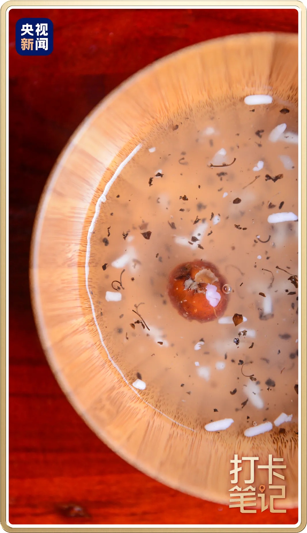 “热干面×蛋酒”是武汉人公认的CP。将鸡蛋打散后,沿着碗边冲入滚烫热水,蛋液被定型后,再加入一大勺米酒和一勺糖,一碗香浓的蛋酒就冲好了。