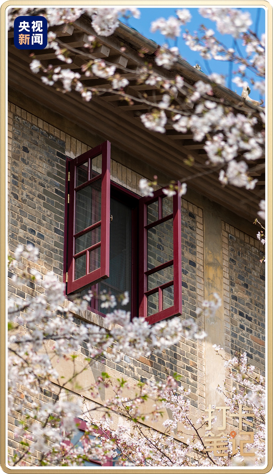 拍摄樱花的绝佳位置之一是武大樱顶,老斋舍的窗扉映着春光,古朴而素雅。