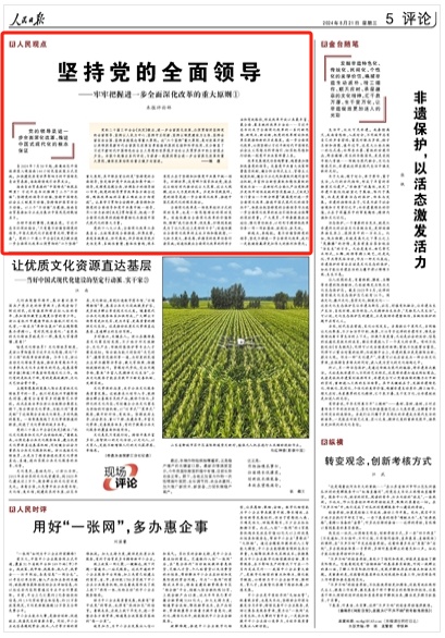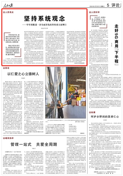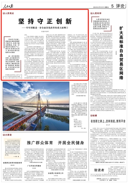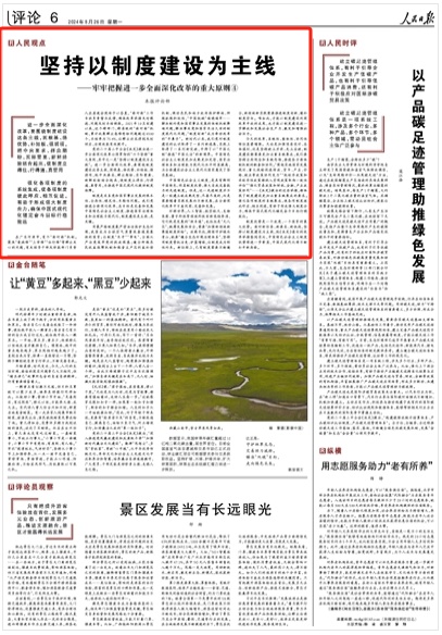 党的二十届三中全会《决定》提出,进一步全面深化改革,必须贯彻好坚持党的全面领导、坚持以人民为中心、坚持守正创新、坚持以制度建设为主线、坚持全面依法治国、坚持系统观念等重大原则。这“六个坚持”重大原则,是对改革开放以来特别是新时代全面深化改革宝贵经验的深刻总结和科学运用,充分彰显了习近平新时代中国特色社会主义思想的世界观方法论以及贯穿其中的立场观点方法。人民日报推出系列评论,与读者一起深刻领会进一步全面深化改革的重大原则,确保改革始终沿着正确方向前进。