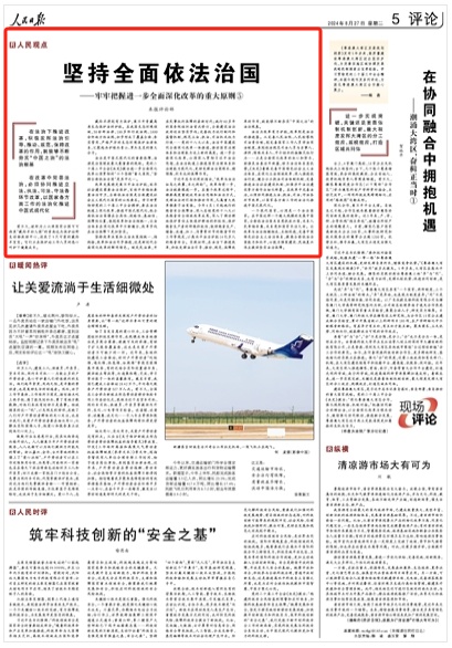 法治是中国式现代化的重要保障,法律是治国理政最大最重要的规矩。党的二十届三中全会《决定》提出进一步全面深化改革必须贯彻的“六个坚持”重大原则,“坚持全面依法治国”是其中之一。改革发展稳定离不开法治护航,经济社会建设需要法治保护,百姓平安福祉要靠法治守卫,全面依法治国是全面建设社会主义现代化国家的必然要求。学习好贯彻好党的二十届三中全会精神,要在法治轨道上深化改革、推进中国式现代化,把全面依法治国摆在全局性、战略性、基础性、保障性位置,做到改革和法治相统一,让法治体系在深化改革中不断健全,改革步伐在法治保障下更加坚实。【全文】