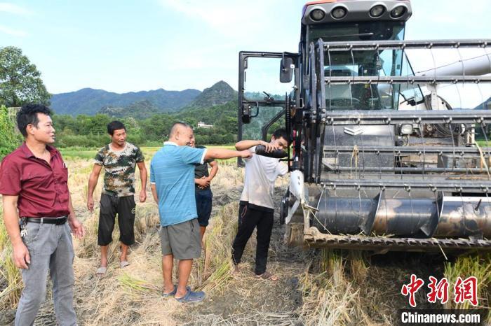 中新网桂林8月28日电(林浩 黄文莲) “现在,农业机械品类越来越多,性能越来越好,不仅运行更加灵活,作业条件也更加舒适,烈日下,我们可以一边吹空调,一边作业,甚至站在稻田边,动动手指头,用遥控器操作。”谈及购买水稻收割机20年来,跨区域农机作业的发展变化,广西桂林市全州金牛农机专业合作社理事长蒋德明近日接受采访时说。
